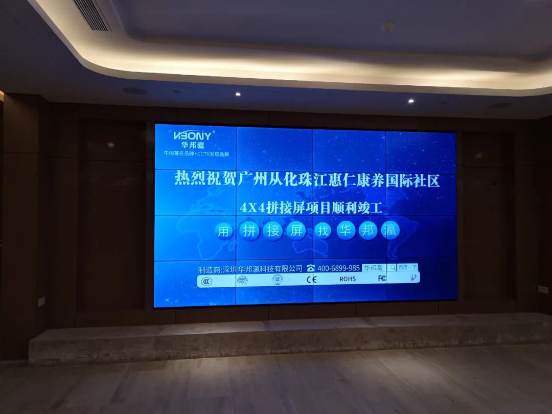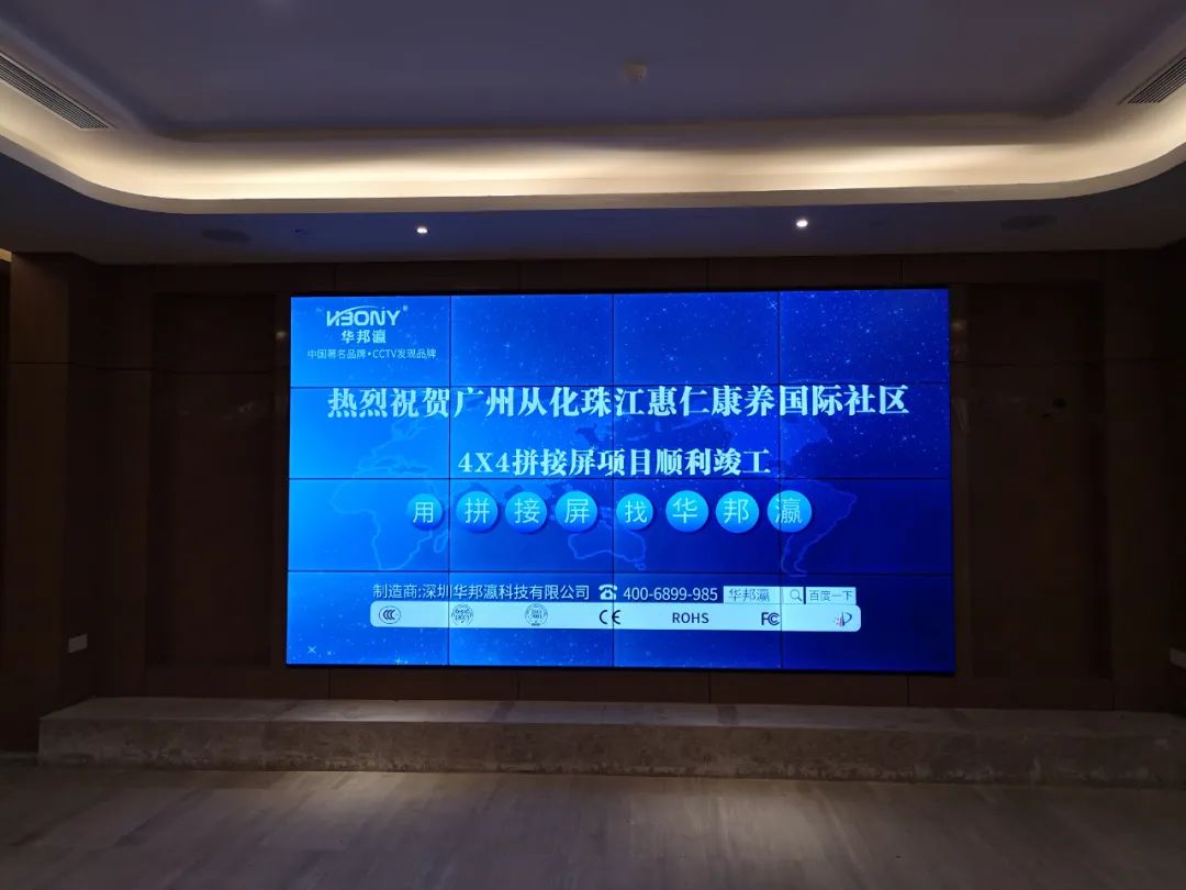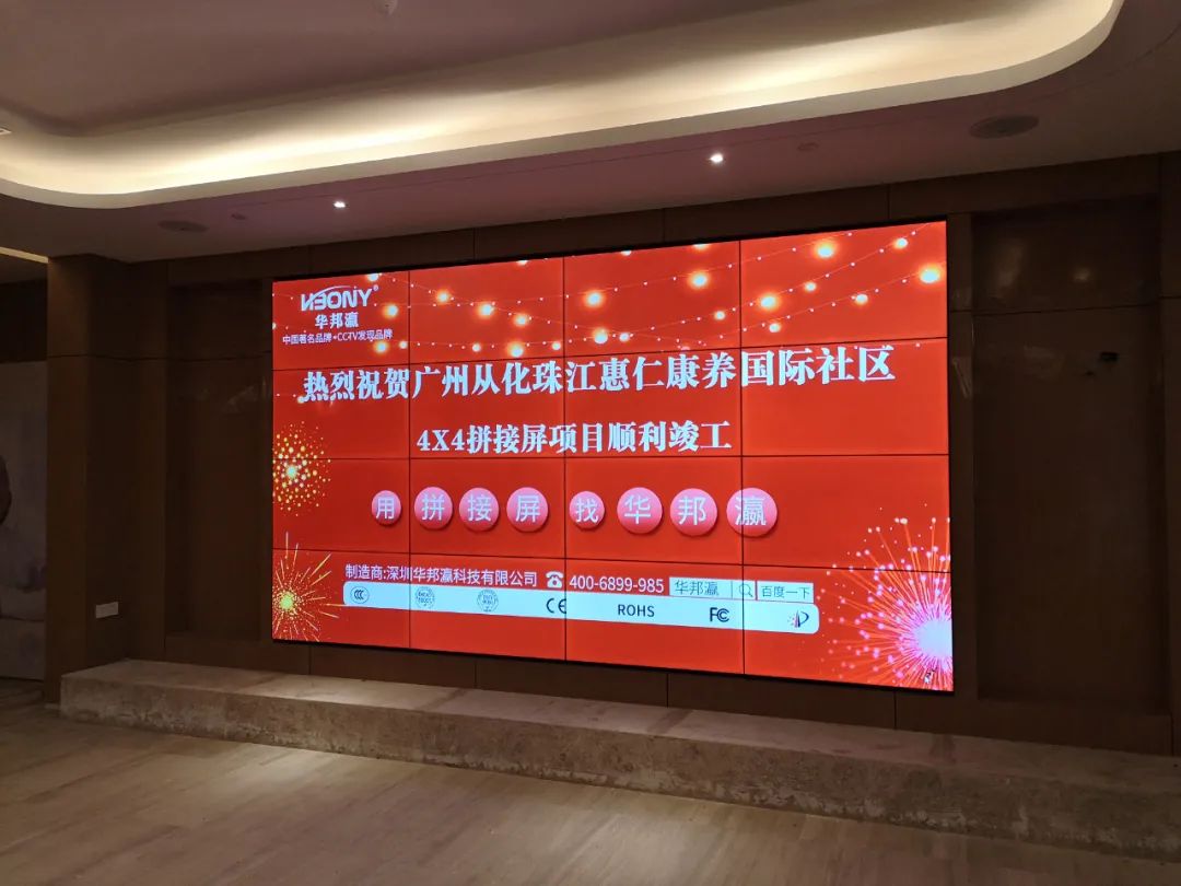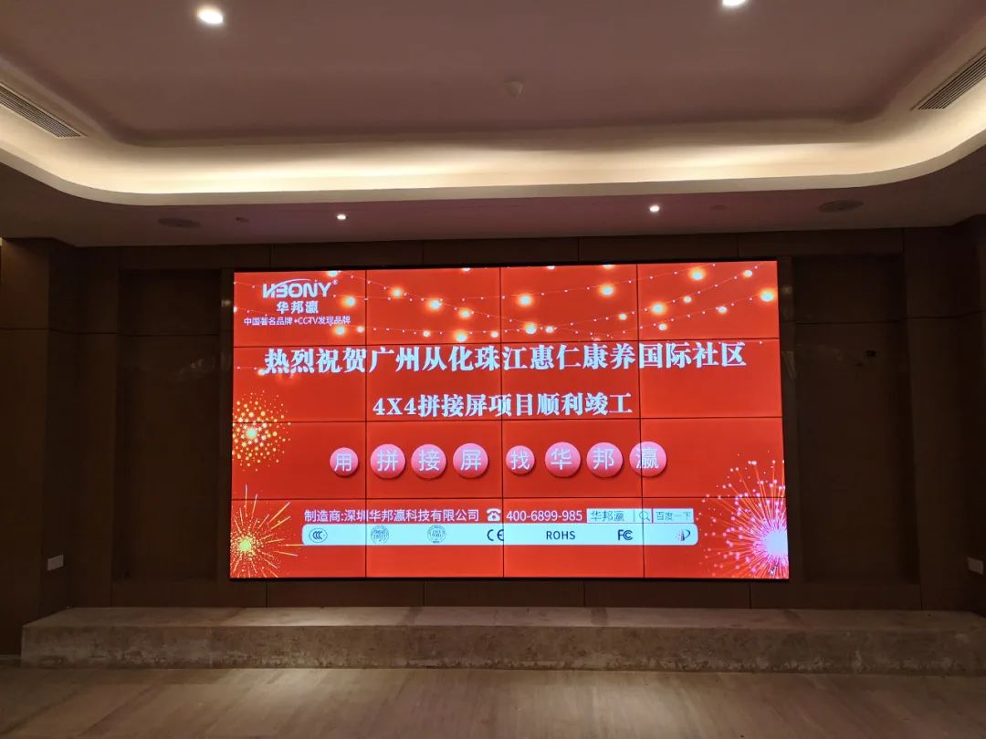 目前,該項目已經(jīng)順利竣工,并經(jīng)由惠仁康養(yǎng)國際社區(qū)相關(guān)負責人核實驗收后投入使用,在此華邦瀛再次感謝客戶的信任及支持,華邦瀛作為國內(nèi)老牌液晶拼接屏品牌廠家,在今后的發(fā)展道路上始終堅持與客戶互利共贏,協(xié)同發(fā)展的理念,如您有任何關(guān)于顯示大屏的需求或者技術(shù)疑問,歡迎隨時咨詢我們,華邦瀛將竭力為您服務(wù)。