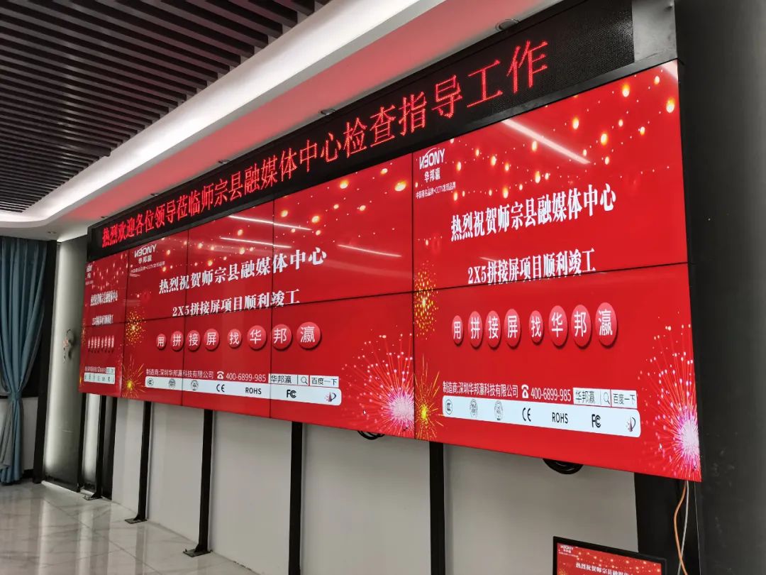 在此,華邦瀛再次感謝云南曲靖師宗縣融媒體中心的信任和支持;深圳華邦瀛科技是一家專業(yè)致力智能商顯產(chǎn)品研發(fā)設(shè)計、生產(chǎn)銷售。上門安裝為一體的國家高新技術(shù)企業(yè),是國內(nèi)知名的液晶拼接屏品牌,項目案例豐富、支持全國上門安裝,如您有任何關(guān)于顯示大屏的技術(shù)疑問或者需求,歡迎隨時咨詢我們。